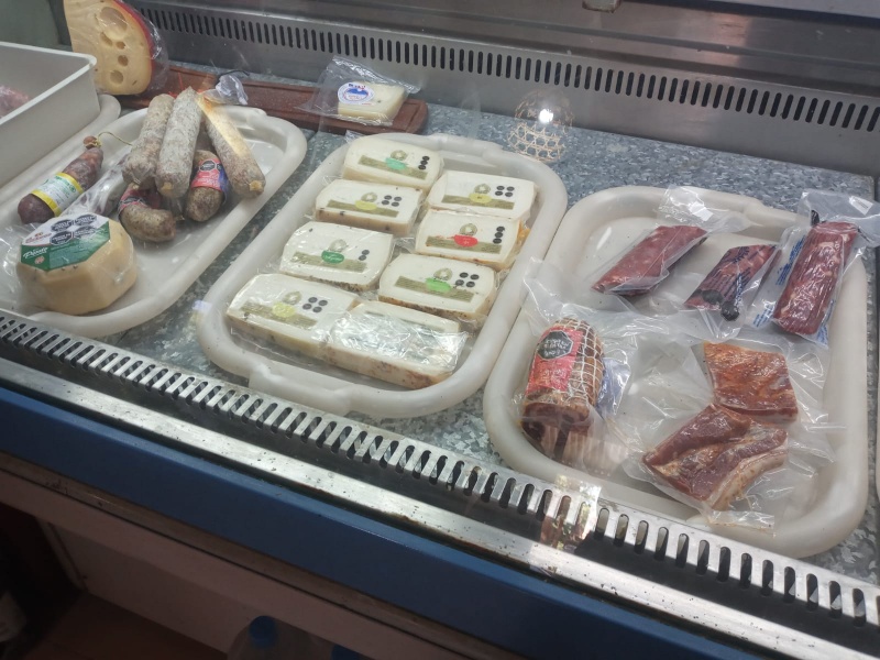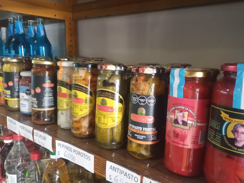Salames, quesos y panes caseros, vinos y conservas.