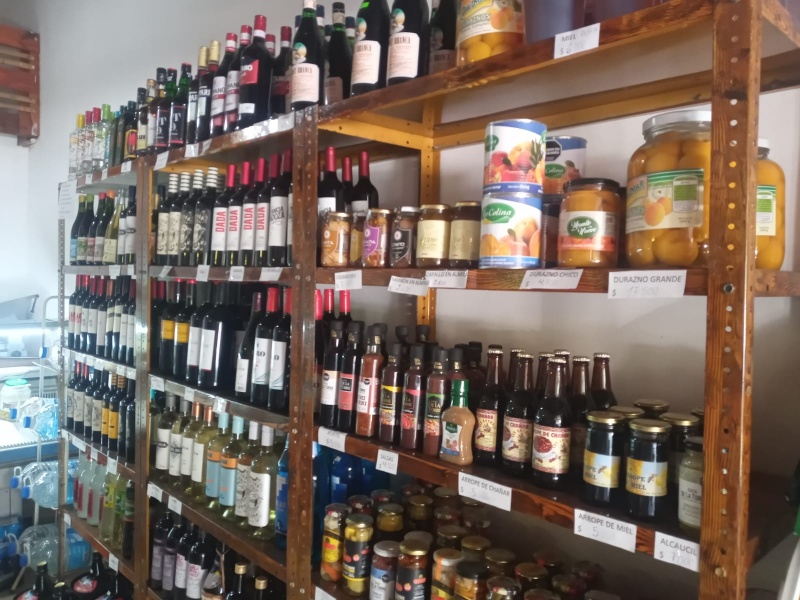 Salames, quesos y panes caseros, vinos y conservas.