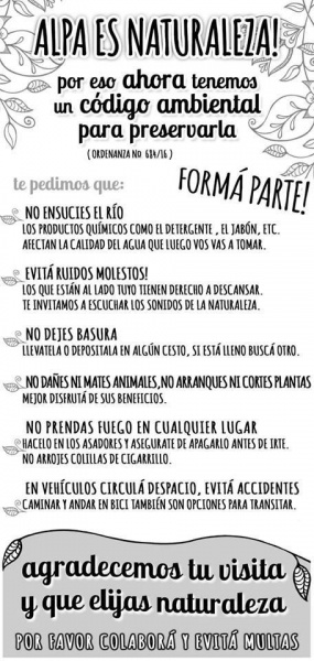 En el marco del nuevo código ambiental, especialistas del Vivero Municipal de Alpa Corral llevan a cabo la primera etapa de relevamientos de flora autóctona dentro del ejido de nuestra localidad. Las actividades cuentan también con el apoyo de instituciones educativas y de vecinos, en pos de la preservación de nuestro paisaje original. En este sentido, se han establecido procedimientos para articular acciones con quienes habitan y/o tienen un lote en Alpa Corral, con el fin de concientizar y evitar sanciones por incumplimientos de las normativas municipales.
